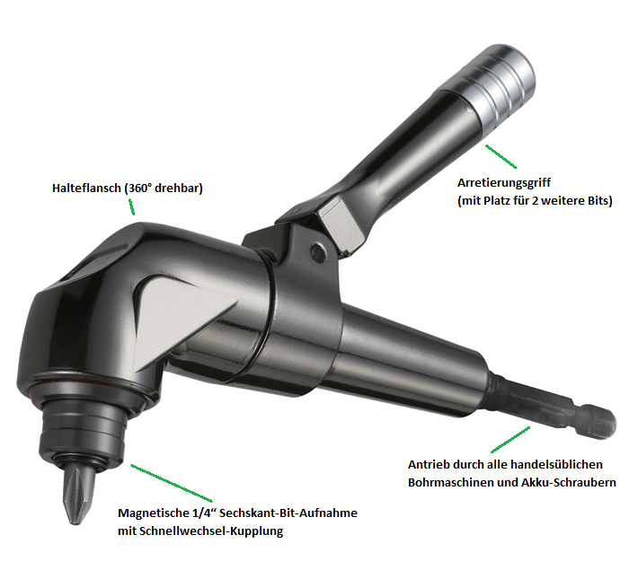 Winkel-Vorsatz Bithalter Winkelgetriebe Winkelschraubendreher CE6,3-Aufnahme 1/4"
