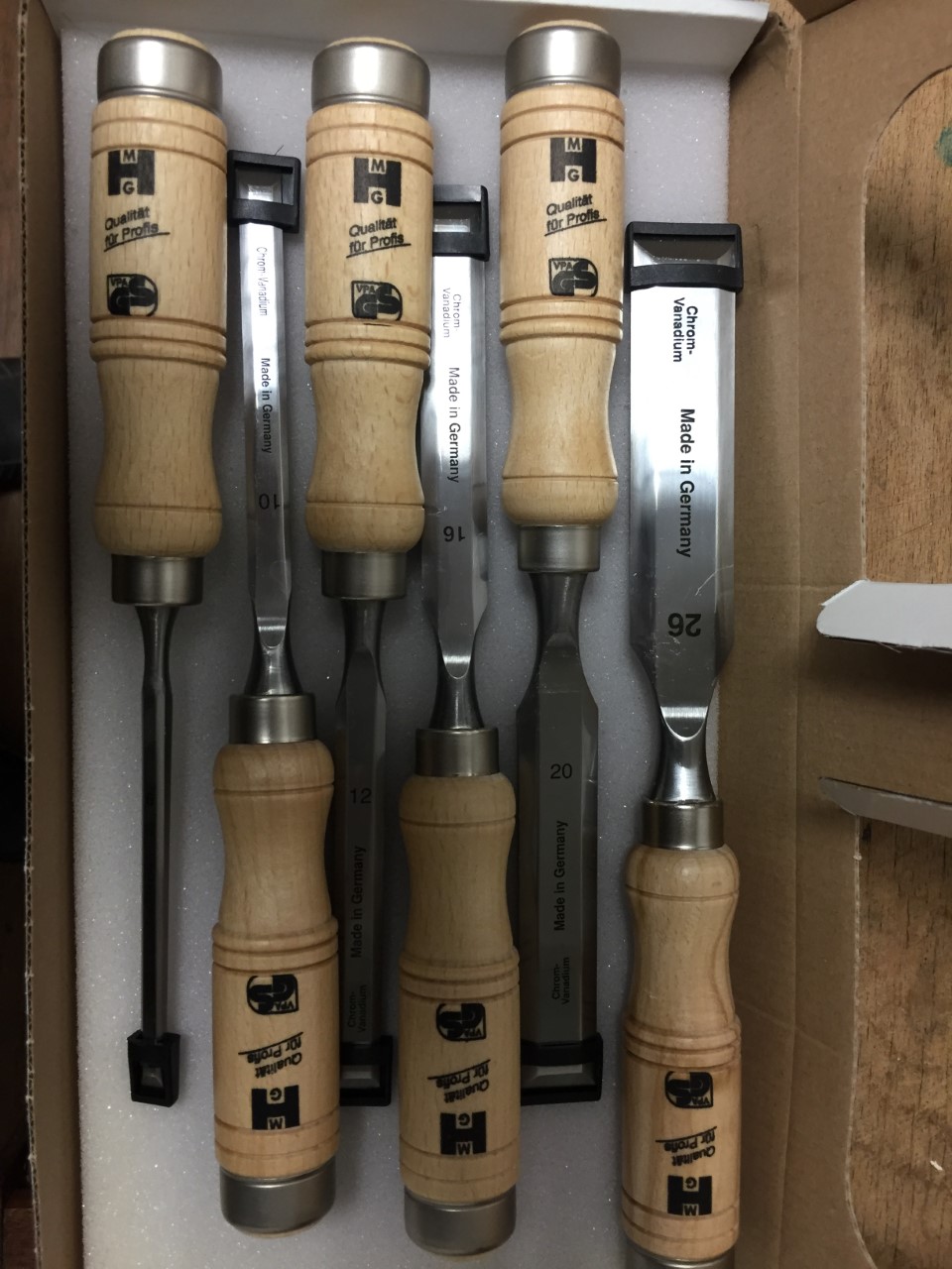 MHG Stechbeitelsatz im Tasche 4,8,14,18,22,26 mm Rundholz Buchen Heft TOP Neuheit